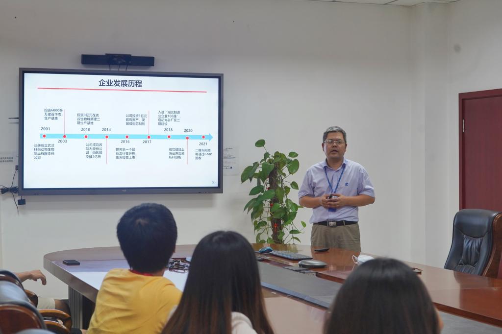 (通讯员:王紫霞 马珂 摄影:赵慧)7月4日下午,437ccm·必赢国际437437必赢国际网址赴湖北省宜昌、荆州、武汉市暑期社会实践团来到武汉科前生物股份有限公司参观交流,董事长助理刘继东与实践团成员进行交流。