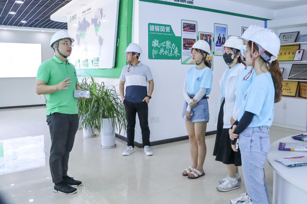 进厂后,在饲料厂品质管控经理蒋磊的带领下,实践团队参观了客户体验区,了解了该集团的发展历史以及企业文化。