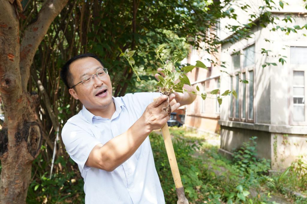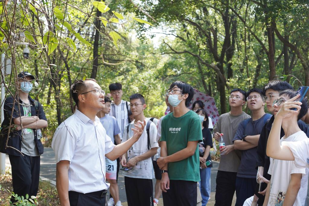 “银杏作为‘活化石’,其叶片和果实有不同的功效。银杏叶活血化瘀,银杏果祛痰止咳。”王德海从校园内常见的植物入手,细致地向同学们介绍道。在狮子山脚下一路走一路看,王德海带领同学们认识了麦冬、何首乌、车前草等随处可见的草药,生动有趣的讲解令人印象深刻。他以枇杷为例,简明扼要地向同学们科普了中药绿色标本制作材料的要求、中药的炮制方法和煎药方法。