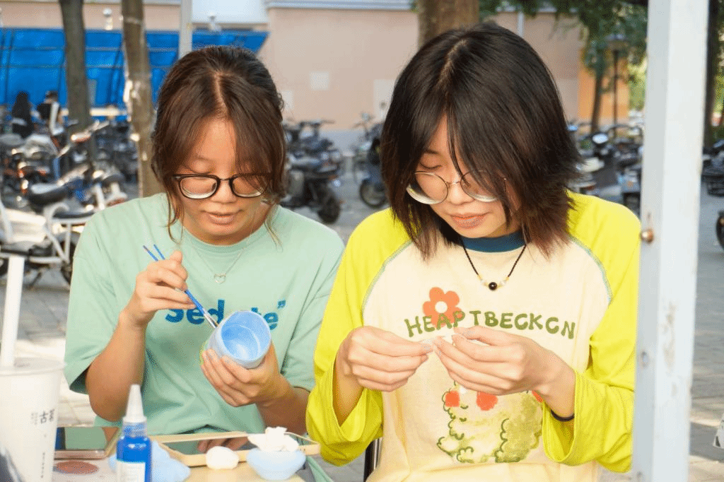 活动开始前,志愿者们于荟五主干道搭起棚子,并将粘土,棉线,颜料等相关材料在桌上摆放整齐,贴上海报,精心布置活动场地。
