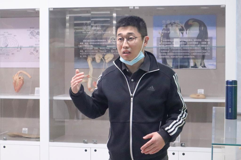 前往标本馆时,刘德志现身说法。在出现意外情况时,例如门没开时,讲解员可以就地讲解走廊的壁画,或者是一些与标本馆有关的小故事,不让气氛凝住。在各个标本前,试讲员们跃跃欲试,按顺序讲解,刘德志依次点评指导。现场气氛热烈,同学们收获满满。