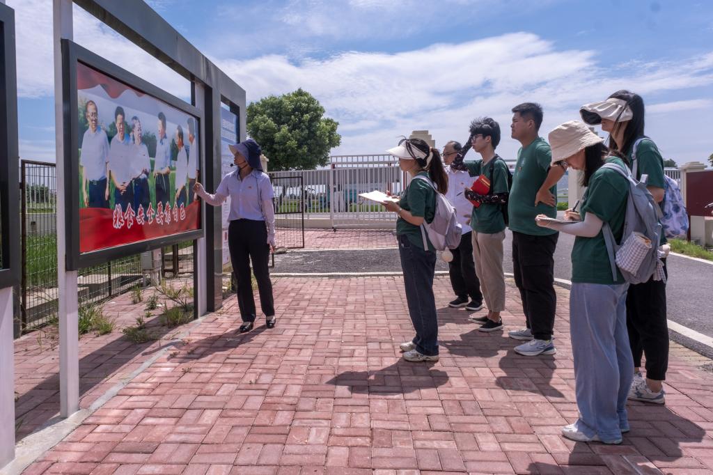 初入鄂州水稻试验基地,大片水稻映入眼帘,正值夏日,水稻秧苗青翠欲滴长势喜人。面对广袤的水稻田,实践队伍成员杨芝明不禁感叹道:“这里的水稻有稻香味。”在水稻中间,插有粉红色标签。“这是不同品种的标识。”党委副书记叶倩向我们介绍道。