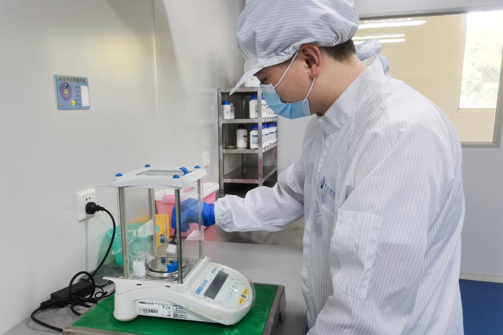 负责质检的工作人员王豆通过示范点样向实践队成员们来介绍测定产品的合格率方法。成员亲自上手操作体验,使用不同浓度样品进行了点样以及孵育。