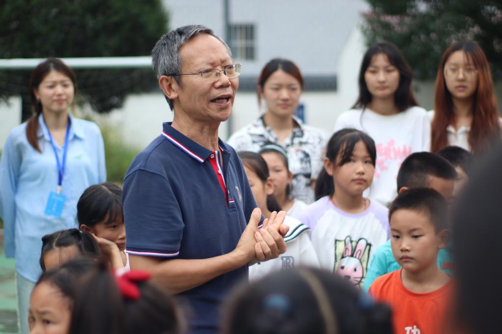 牧医阳光支教队队长刘亦瑶为华中科技大学法学院教授、暑期社会实践队指导老师彭礼堂及其团队介绍了支教团队的背景、授课模式及日常安排。彭礼堂首先对牧医阳光支教队表示了肯定,他认为,坚持做好支教这项公益事业并能把它传承下去是对乡村振兴的助力,更为社会带来了福利。“非常幸运、非常幸福能在做教育公益的路上遇到你们这么一群有情怀的人。”彭礼堂感慨道。他对牧医阳光支教队四年来的付出表示诚挚的感谢,并希望困境与留守儿童能够得到更多物资上的资助以及精神上的关爱。