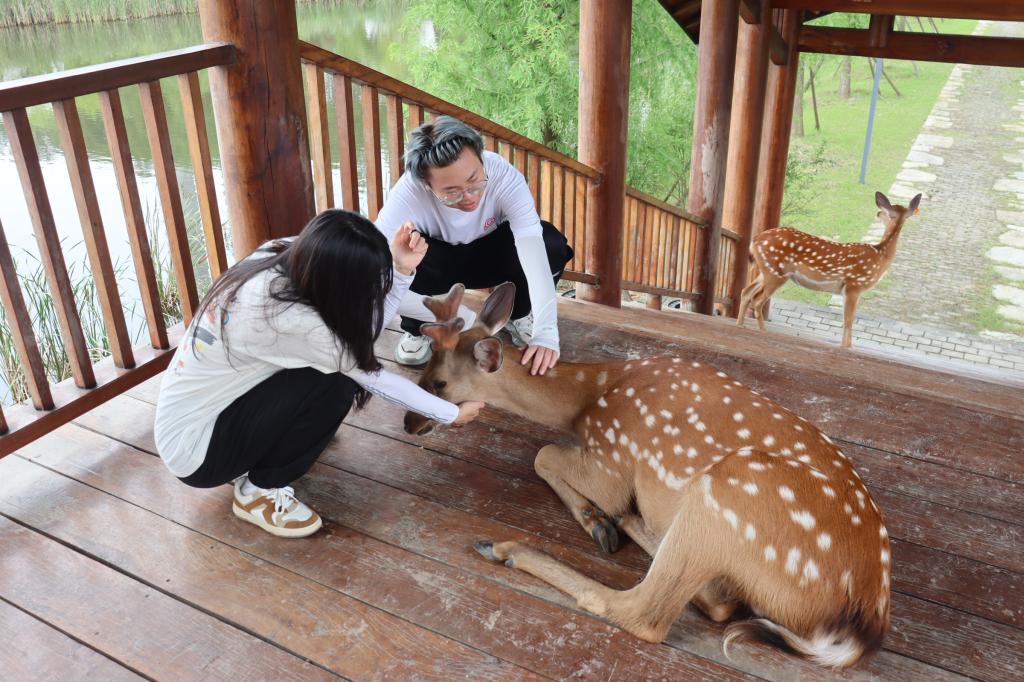 活动过程中,实践队员们在营地中见到了毛驴、梅花鹿、鸵鸟、羊驼、松鼠等各种各样的动物,而其中最令实践队员们印象深刻的却是一头编号为“826”的梅花鹿。