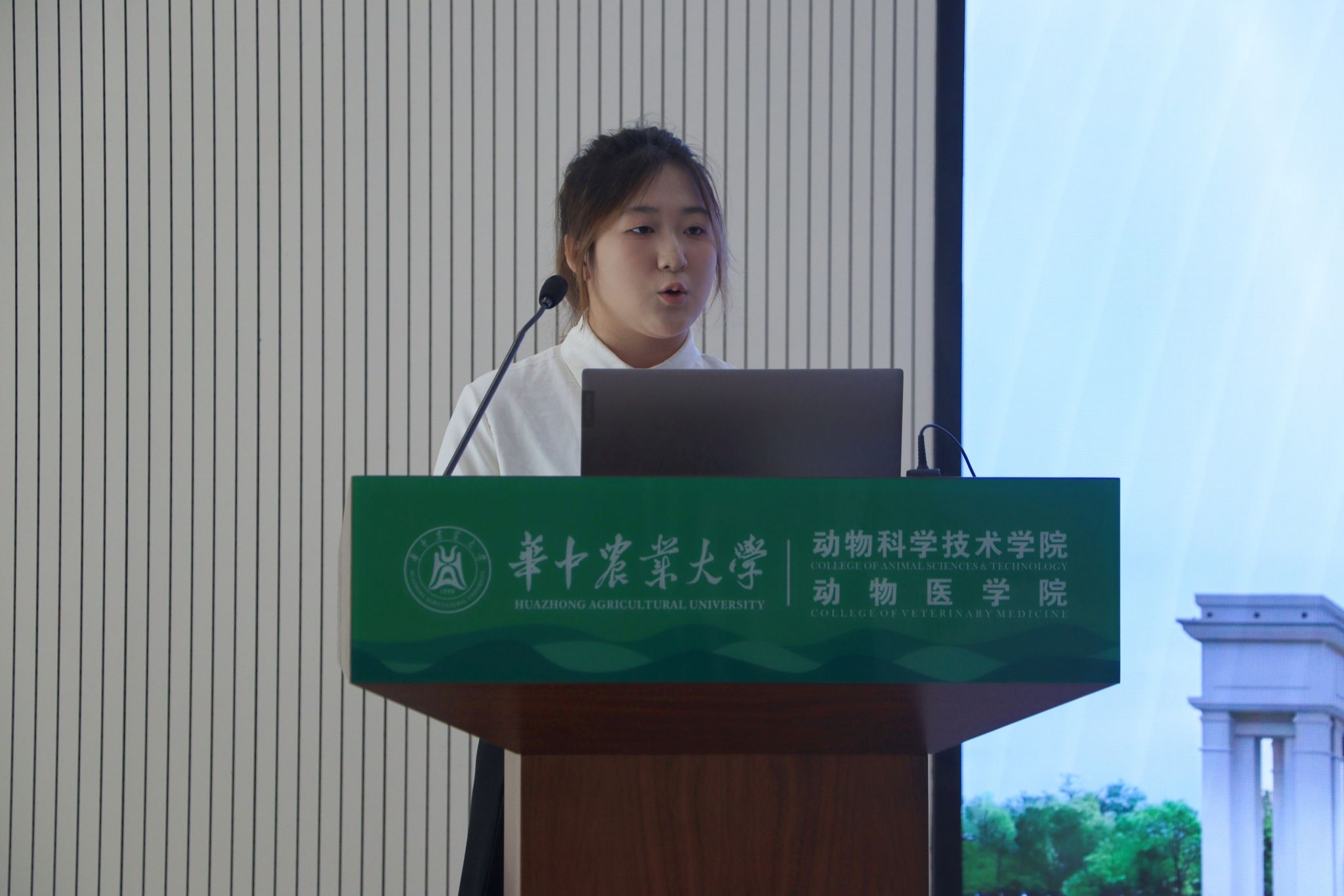 学生会主席候选人周姝婷正在进行汇报 李卓霖摄