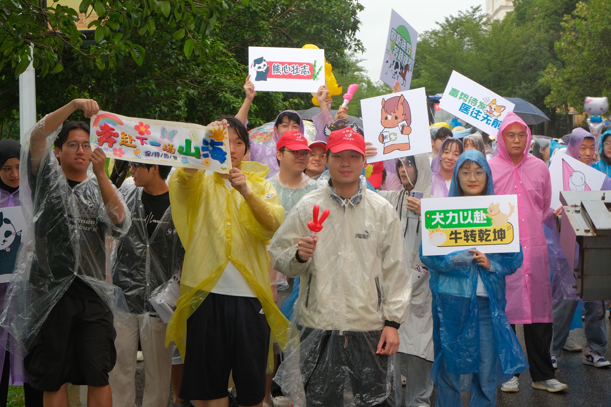 瓢泼大雨中,参与巡游的牧医学子仍热情饱满。他们手持各类应援物品,脸上洋溢着青春的笑容,跟随着花车的行进轨迹,高喊“毕业快乐”。动科2301的李雪说道:“这次巡游活动让我感受到了437437必赢国际网址不一样的风采,花车的造型设计的很用心,同学们也非常有活力。”
