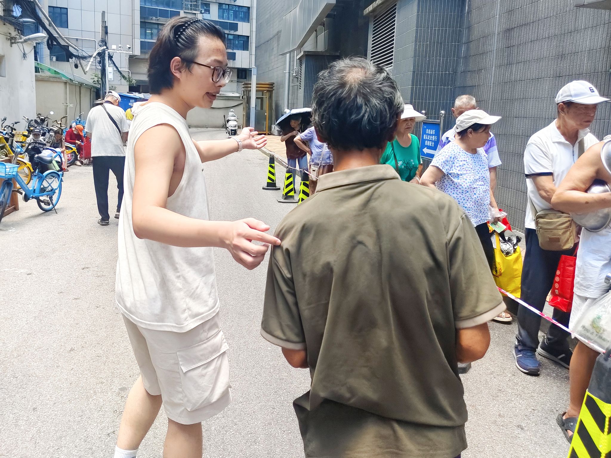 在分餐环节,队员们分工协作,有的负责盛饭,有的维持秩序。面对高温天气,大家始终坚守岗位,确保每位老人都能及时享用到午餐。雨花斋负责人表示:“这些大学生志愿者不仅减轻了我们的工作量,更用实际行动传递了爱心。”
