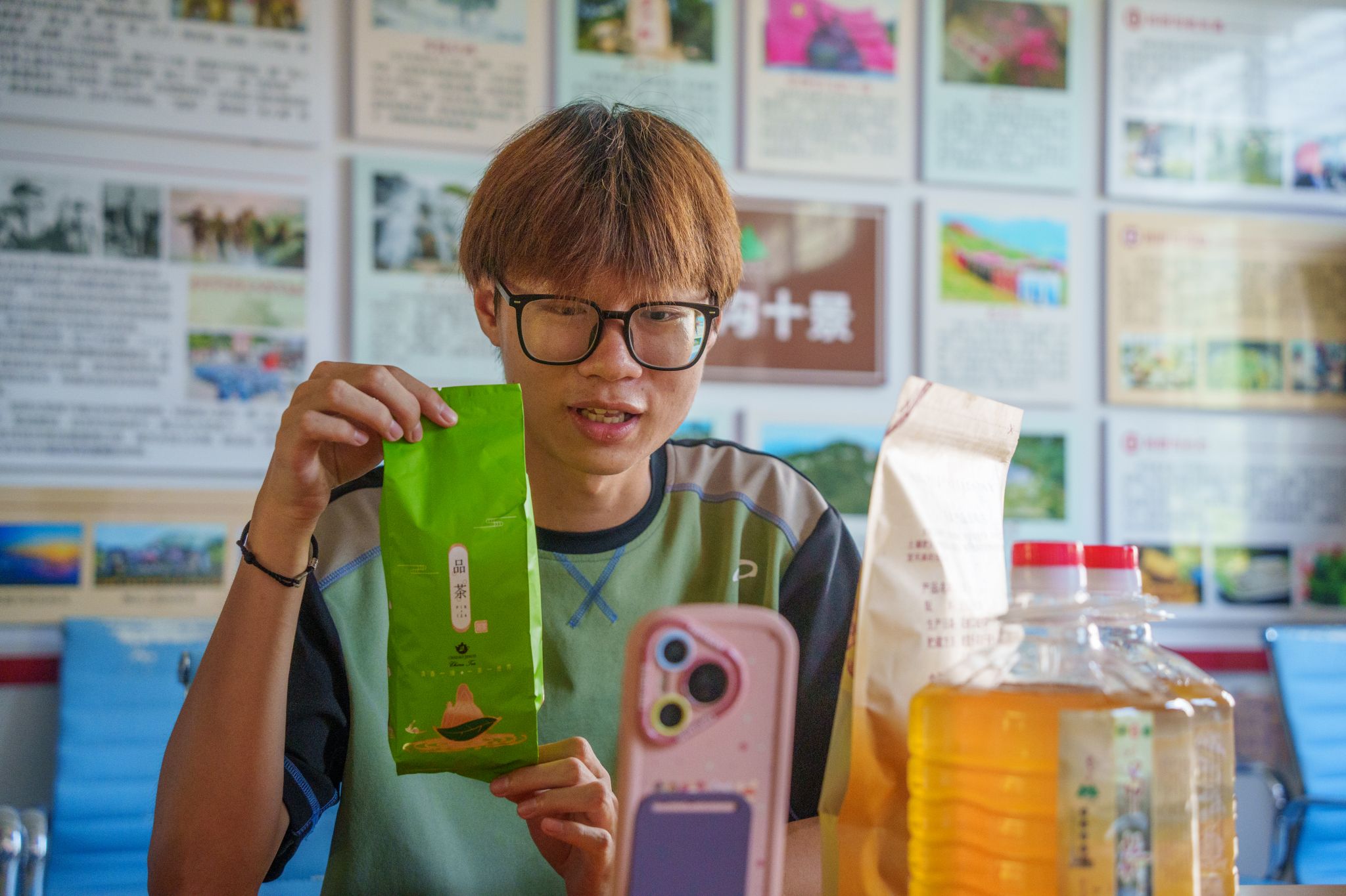 为确保直播效果,实践队提前数日启动全方位筹备工作,从田间调研到流程演练,每个环节都倾注心血。队员们兵分多路,深入一线:动医2302班方云琪带领小组钻进茶园、山林、农户家中,用镜头记录绿茶的生长环境、天麻的生长周期、葛根的采摘过程及老米酒的酿造工艺。“我们得让观众看到每款农产品从土地到成品的全过程,这份真实才是最好的‘卖点’。”方云琪在筹备时说道。