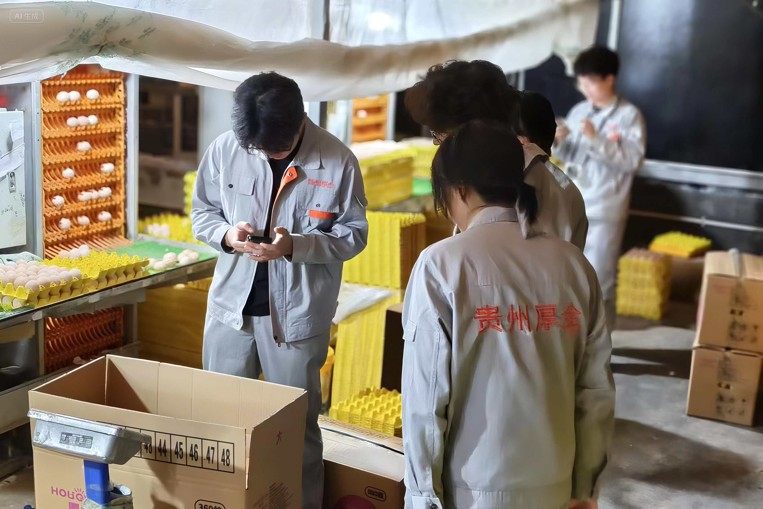 在鸡蛋分拣环节,部分成员在传输带旁协助工作,学习自动化分拣设备的操作原理。技术人员赵贞华向团队成员介绍:“一枚优质鸡蛋的形成,从饲料配比、养殖环境到收集分拣,每个环节都需严格控制。仅蛋壳质量一项,就涉及钙磷比例、维生素D添加量等20余项管理指标。”