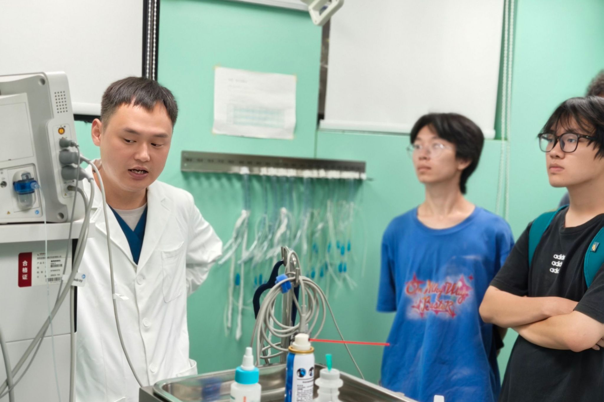 随后,牛俊义院长为实践团讲解了兽医诊疗的相关知识及典型案例。据了解,医院现有生化仪、血常规检测仪、荧光定量PCR仪等先进设备,可开展内脏功能与病原检测,如通过PCR技术准确诊断呼吸道五联症和弓形虫感染等。牛俊义分享了狗弓形虫病、麦克斯虫感染和肠道线性异物等典型病例,并在手术室现场演示常用手术器械与仪器,详细说明手术注意事项和临床操作要点。