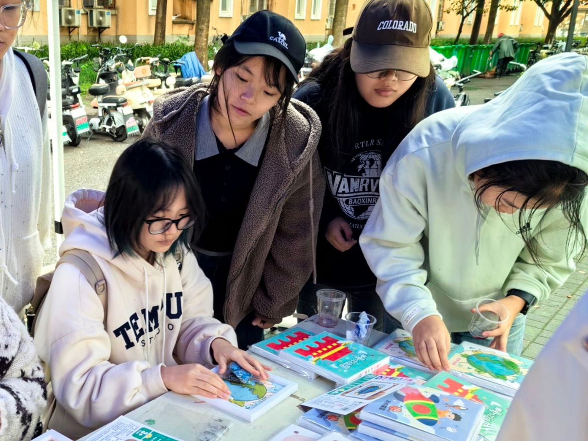 活动前,工作人员完成场地布置,将米粒、小米、绿豆、红豆等谷物分装整齐。下午三点,活动准时开始,同学们迅速投入创作中,屏息凝神地拣选谷物、精心调整布局,现场气氛专注且有序。期间,工作人员耐心提供协助,确保活动顺利进行。