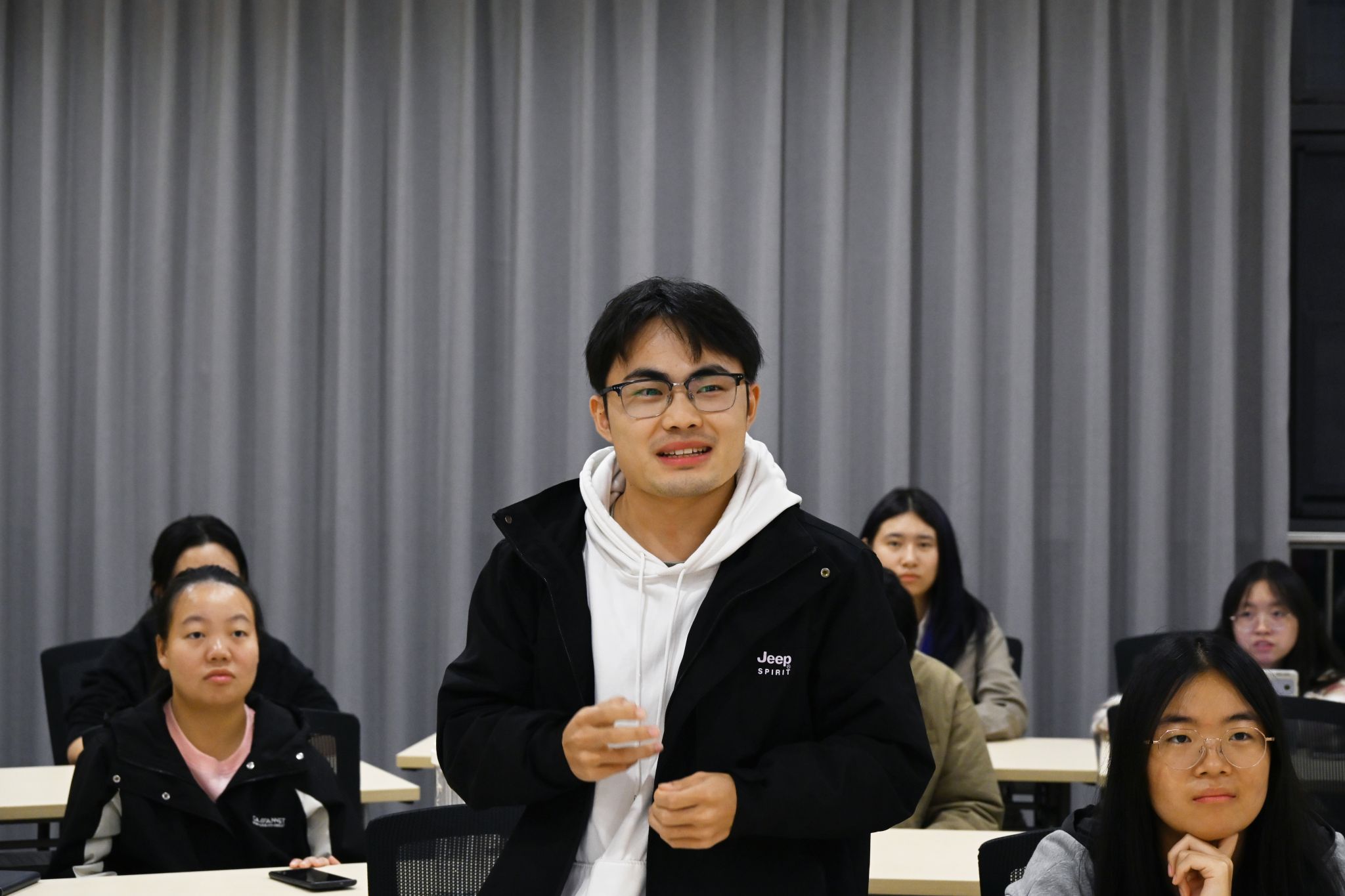当动医2403班王梦真询问如何在大三选择专业分流的方向,申邦建议同学们利用大一大二的课余时间,尝试不同的研究方向,在实践中找寻满足个人需求、实现人生价值的专业方向。提及进入实验室的渠道,申邦强调,要把老师当作朋友,通过写邮件、办公室约见等方式主动联系感兴趣的老师,充分利用学院提供的资源,积极询问老师意见。