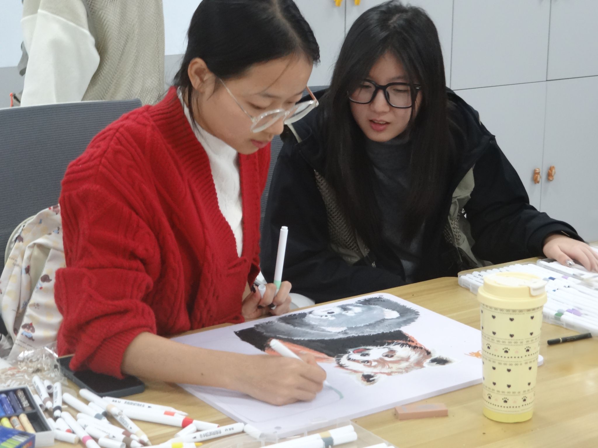 活动当天,志愿者在饲养员专业讲解下,系统学习小熊猫的外貌特征、生活习性以及保护现状,深化对小熊猫的科学认识。随后,各校志愿者协作配合,结合实地观察与科普资料,完成三项创作作品:绘制兼具趣味性与知识性的小熊猫主题科普展板、设计小熊猫专属徽章以及制作详实的小熊猫家族信息板。活动最后,志愿者们合影留念。