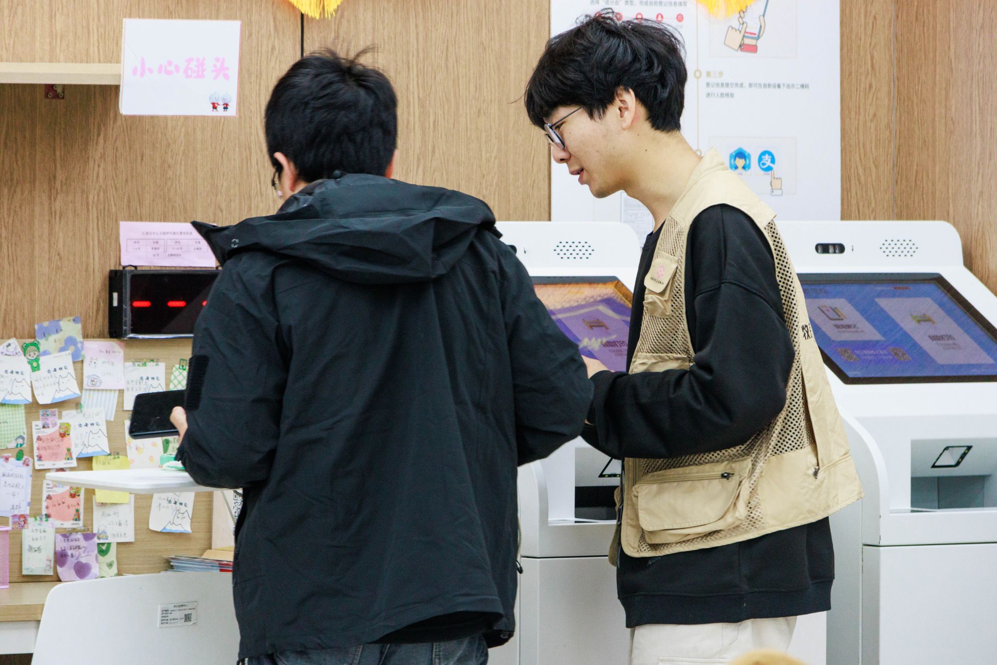 上午9时,首批3名志愿者抵达献血中心。在血液中心工作人员的指导下,志愿者们熟悉工作流程并接受简单培训,随即分守两个点位同步开展工作:一位志愿者坚守外厅,引导献血者完成扫码登记、电子签名等流程,同时关注献血者状态,按需提供饮料、午餐、水果等物资;另外两位志愿者则在成分献血间内,协助照顾献血者,配合工作人员更换一次性用品、取用相关设备。中午12时40分,前后两批志愿者完成工作交接,继续坚守岗位,直至下午4时活动结束。