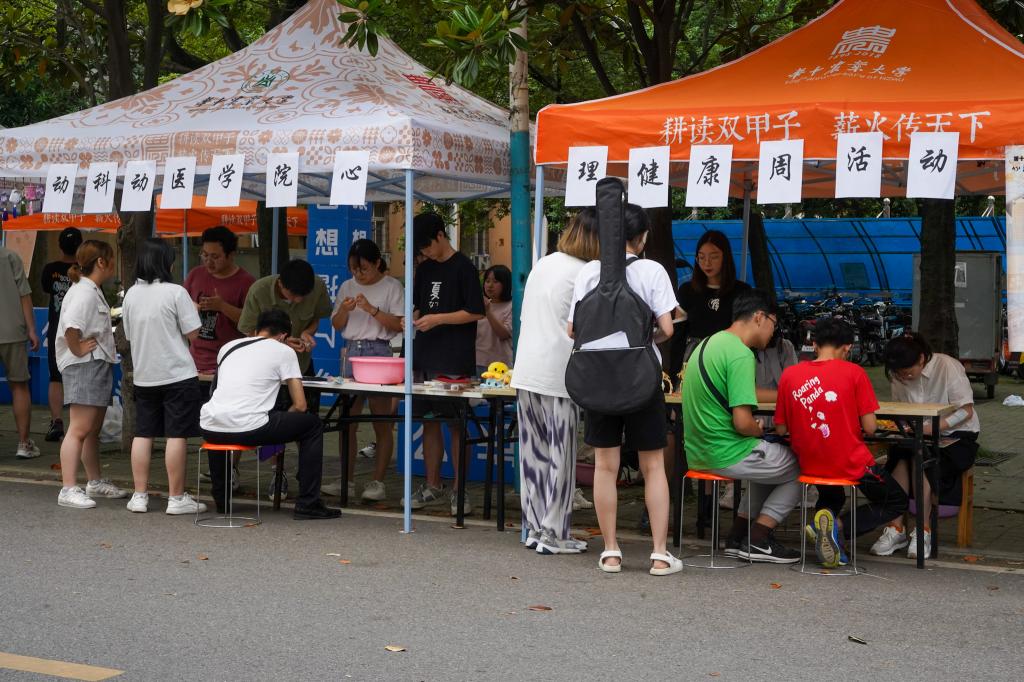 线下活动则分为“给一年后的自己写信”、“香囊手链DIY”以及闯关游戏三个环节。同学们在完成三国华容道、趣味拼图等闯关游戏后,可选择不同的材料制作夏日驱蚊香囊和手链。来自动科2004班的郑会云在完成动物骨骼拼装游戏后,道出了现场同学们的心声:“通过自己亲手拼装动物骨骼,结合专业课所学,我能够更加直观地感受到动物骨骼的特点。看着自己拼装完整的骨骼模型,我也感受到生命进化的无限可能与自然生命的魅力。”动科2005的胡亚丽在参与闯关游戏时发出了感慨:“闯关游戏是一个由易到难的过程。拼图和华容道都需要一定的耐心和毅力。在拼图的过程中,专注寻找拼图碎片使我忘却烦心事,由于学习与工作造成的焦虑感也得到部分缓解。”