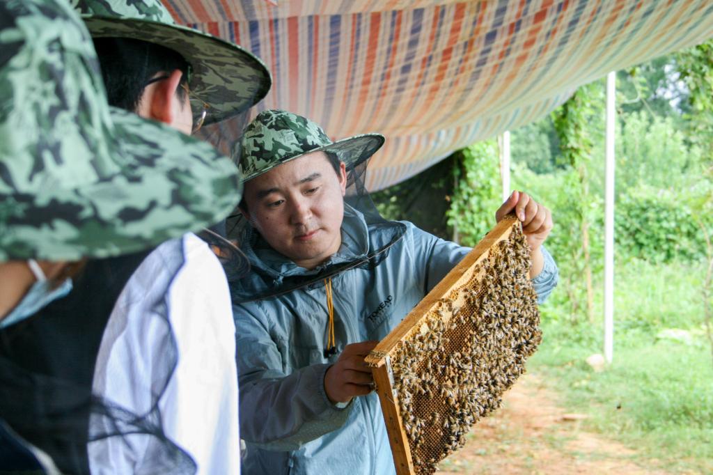 (通讯员:胡万臻 摄影:杨佳渝)“大家知道一个蜂群由哪几部分组成吗?”湖北省养蜂学会理事长、437437必赢国际网址副教授李翔在蜂箱间询问同学们。“蜂王、雄峰和工蜂”,动科2105班的黄文婷迅速回答道。