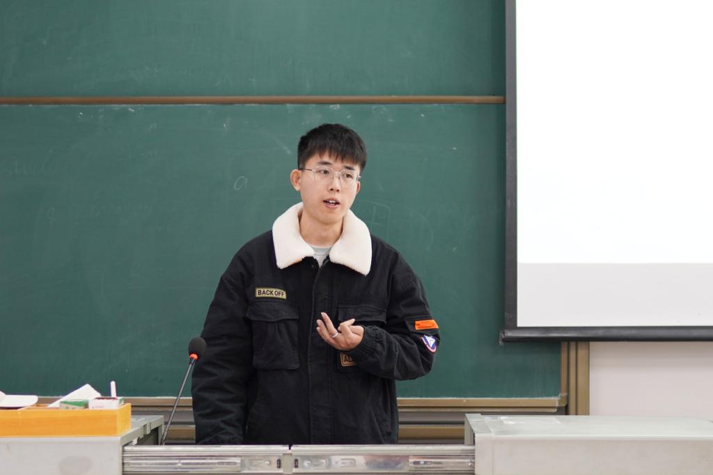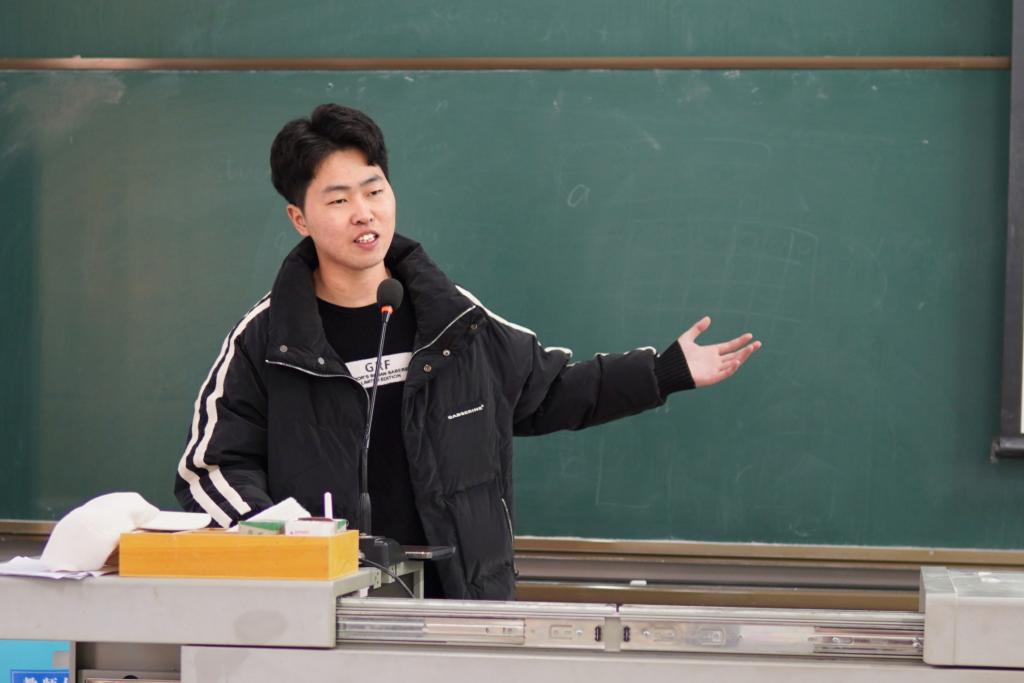 会议后半部分,孙红勋紧扣“创新创业定义”和“创新创业的收获”展开讲解。在论述“创新创业定义”时,他从“创新”与“创业”两个方面分点解说。提及到自身收获时,孙红勋表示,通过亲身经历创新创业大赛,不仅对自身有一个很好的锻炼,更重要的是给自己的儿时梦想交上了一份满意的答卷。分享最后,孙红勋提出“多尝试,别胆怯,把目光放远”的期许,与大家共勉。
