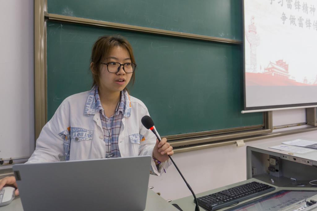 团支书李子藤带领同学们回顾雷锋生平,介绍雷锋事迹,并邀请支部成员朗读雷锋日记中的内容、分享当代雷锋事例。李子藤强调,作为青年学生,要在学习生活中切实体现雷锋精神,乐于助人,勤俭节约,热爱劳动,立志为国家做贡献,为人民办实事。