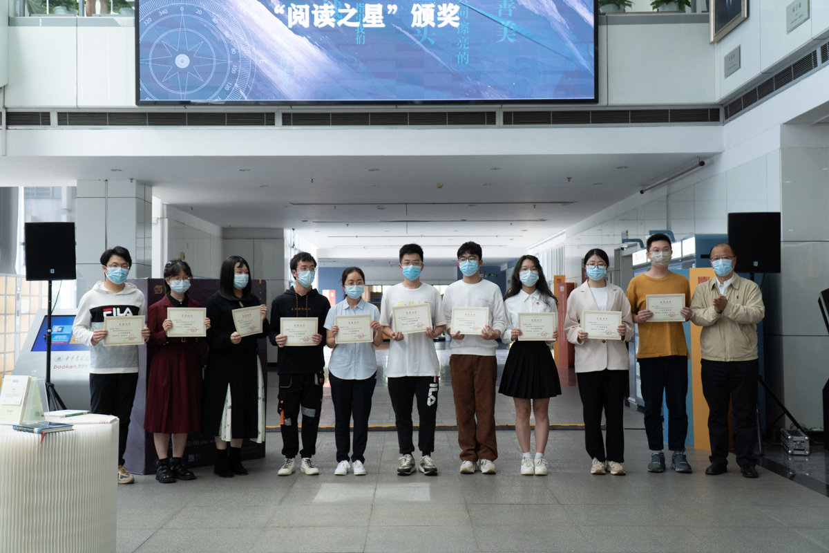 校长李召虎为第九届”十大阅读之星“颁奖并合影留念(学通社记者 郎一阳 摄)