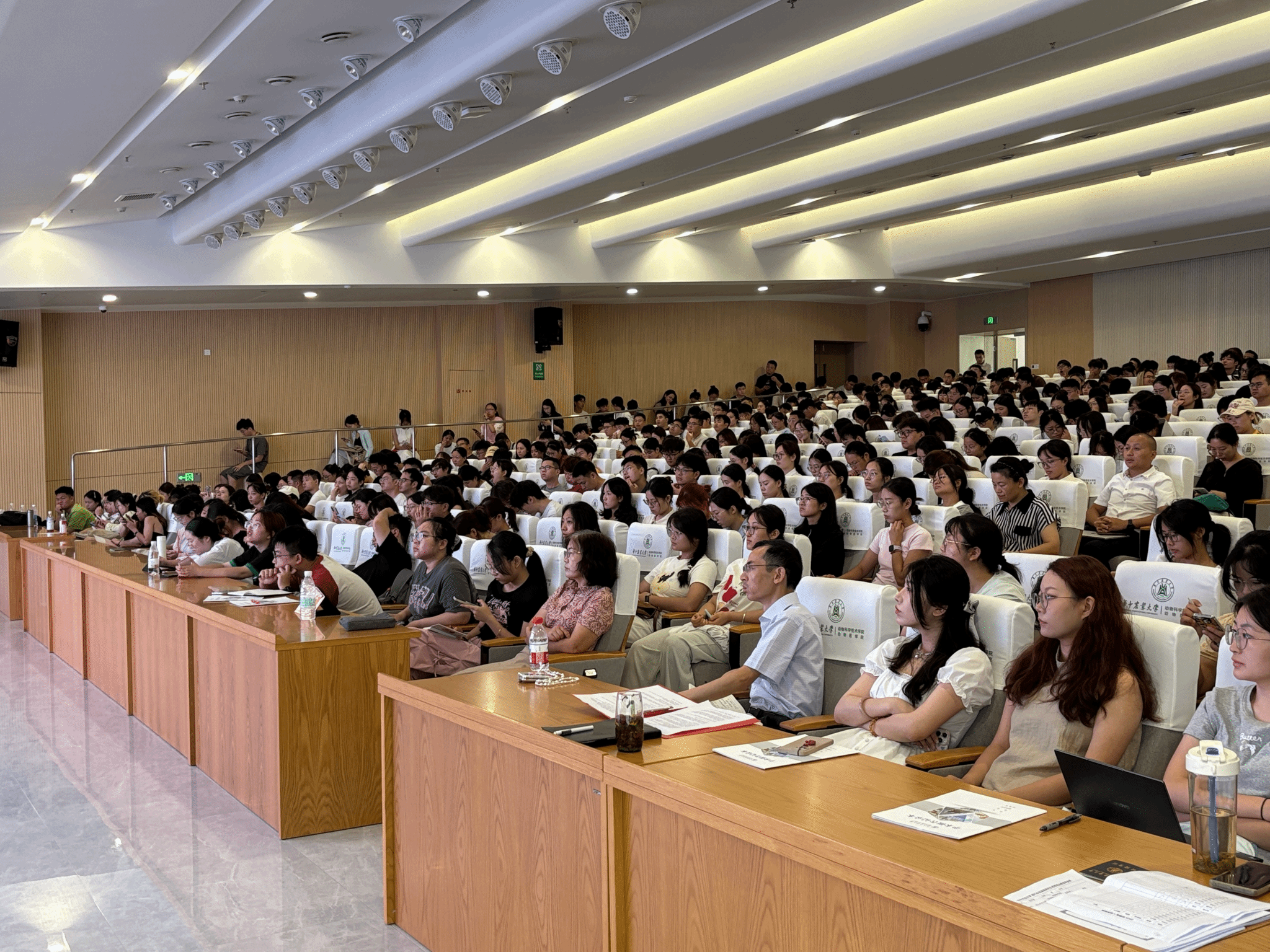 (通讯员:陈思琪 汪楚琪)9月4日上午,我院于第四综合楼F101报告厅举办2025级新生入学教育大会。此次大会由学院副院长申邦教授主持,人才培养办公室主任刘嘉老师、新生辅导员马雨欣老师出席会议,基础兽医学系王玉莲教授作“如何做好实验记录——研究生科研能力与学术诚信培训”主题大会报告。全体研究生新生七百余人参会。