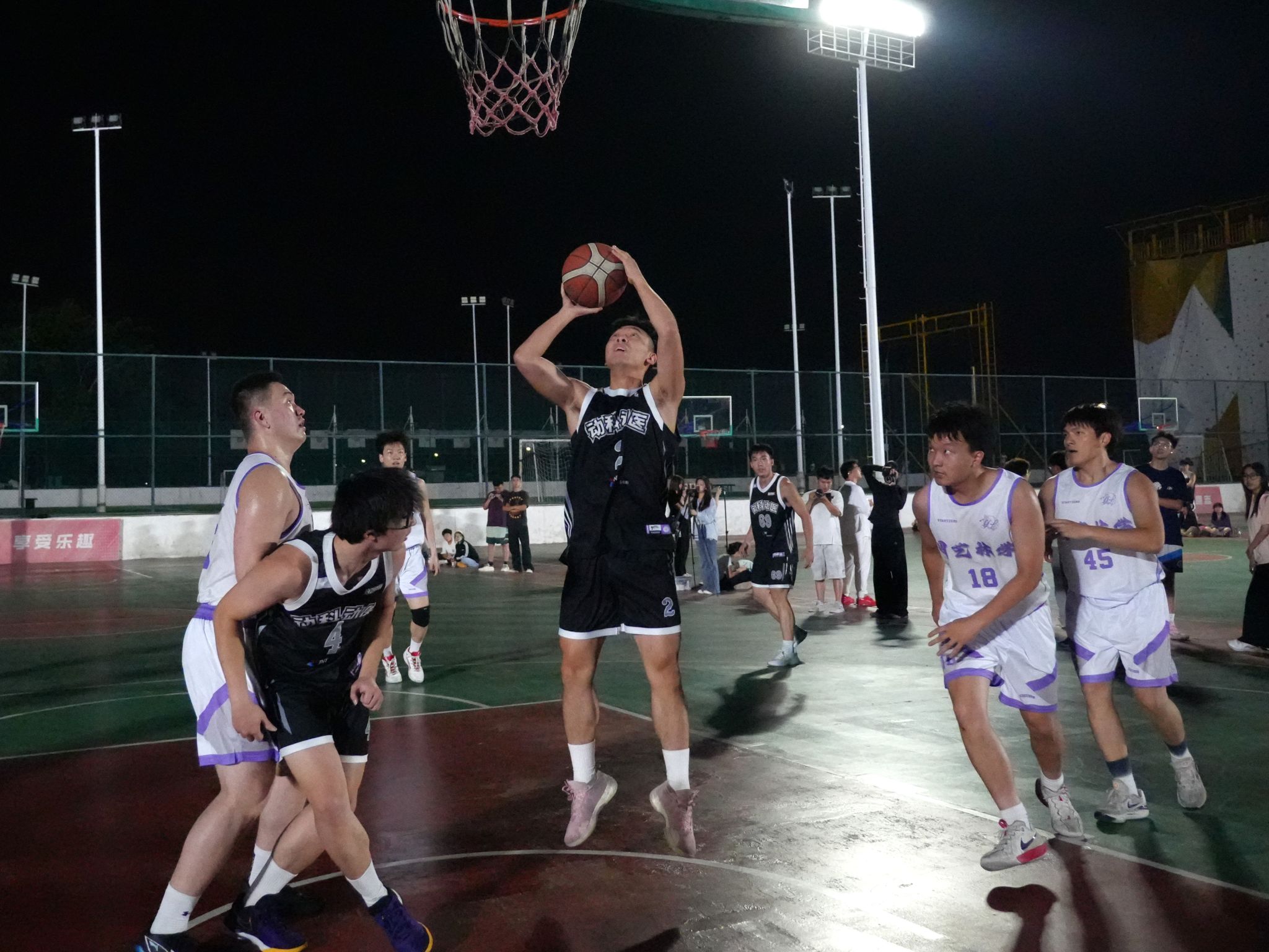 上半场比赛,动科动医男篮火力全开,攻势如潮。首节开始,12号张雅菲便凭借一记精准的二分球为我方打开局面。紧接着,65号王治国两罚全中。随后,王治国与10号缪智仰上演精妙配合——王治国凭借灵活跑位突破对方防线,将球精准传给缪智仰,后者顺势上篮得分。缪智仰乘胜追击,再度命中二分。首节结束,动科动医男篮以8:10的比分暂时落后。进入第二节,球队延续火热手感,进攻火力持续升级。2号王修远以一记精彩的三分球点燃全场士气,随后又凭借扎实的篮下技术再进二分。65号王治国同样表现亮眼,稳稳命中一记二分球,进一步缩小分差。随着终场哨响,半场比分定格在15:20,动科动医男篮以5分差距落后。